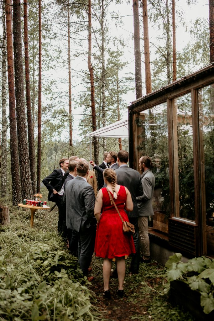 In the evening, strong rain and thunder swiped across the lake. However, nothing made this wedding more perfect than people cuddled up close and warm inside small cabin houses. As the evening finally got dark, the entire cabin area was light up with dozens of lights and candles. Amazingly, only the calm lake and dark forest around us. As I left the wedding and walked away through a narrow forestry road, I could slightly hear the music and laughter far in the distance. It was the perfect ending to a perfect day.